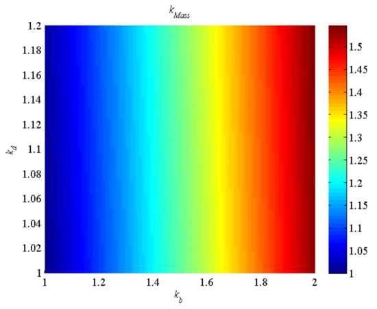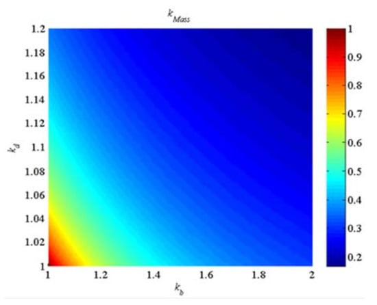 From Equations (19) and (20), can be replaced by kb and kd, combined with the initial design parameters of the reactor, which can derive that the proportionality factor of metal conductor usage, kMass, is a function of kb and kd, as shown in Equation (22):