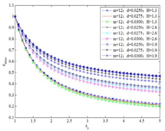 As shown in Figure 7, the proportionality factor of metal conductor usage, kMass is gradually increased with the increase of kb, and the change of the air duct width, kd has less of an effect on it.