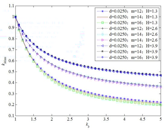 For a given range of variable parameters kb and kd, the optimization curve can be plotted according to the Equation (22), which describes the electromagnetic efficiency of the reactor considering the change of the air duct width, as shown in Figure 7.