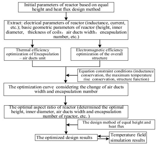 Dry-type air core reactors are now being widely used in power systems [,]. The design optimization of a reactor mainly focuses on the contradiction between the key properties (inductance, current carrying ability) and cost of the metal conductor materials (copper, aluminum). Thus, optimization methods to improve the utilization ratio of metal conductor are needed. Currently, the optimization theory and method in this field mainly include electromagnetic optimization and thermal optimization.