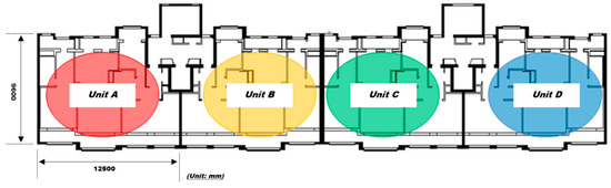Most residential buildings in South Korea are apartment buildings [45,46]. The reference apartment building, which is located in Seoul, South Korea, consists of 20 floors, and each floor contains four apartments. Other building elements such as walls, windows, etc. are presented in Table 1.