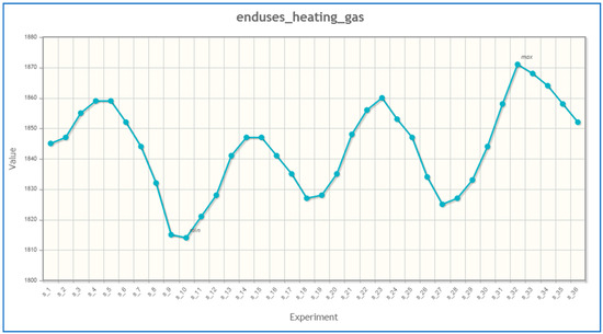 Example of numerical results of the energy consumption depending on the building orientation obtained directly from the model output.