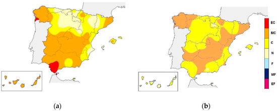 - IDEA. Guía Técnica Condiciones Climáticas Exteriores de Proyecto; IDEA: Madrid, Spain, 2010. [Google Scholar]