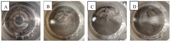 The formation of gas hydrate was visually observed, relatively rapidly after the start of the stirring. Gas hydrates accumulated rapidly in the cell, and the stirrer was then switched off to prevent any damage (Figure 4). It was visually observed that the gas hydrate formed first at the H2O phase interface and then grew in the H2O phase before spreading across the entire surface of the sapphire window, blocking the view (Figure 4).