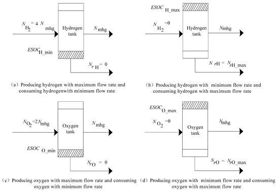In order to prevent the amounts of hydrogen and oxygen from reaching their tank limits, an additional control action is developed, as shown in Figure 5.