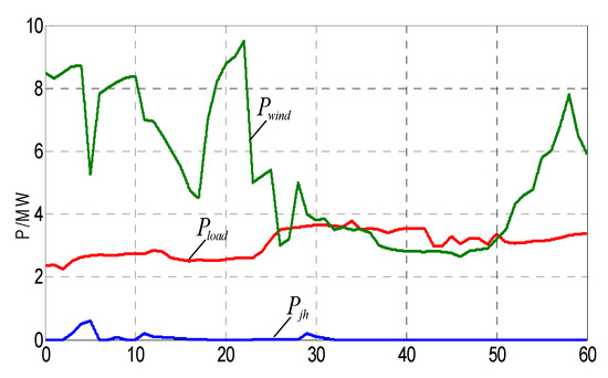 In the control scheme, ESOCS is considered as the priority factor in the operation. And the relationship among the wind power output Pwind, the cluster power dispatch demand Pjh, local load demand Pload is defined as follows: