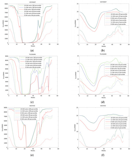 The temporal resolution of the EMPS model is flexible, but calculation time increases with increased resolution. This analysis uses 2 h resolution for weekdays and 4 h for weekends. Furthermore, it is possible to include start/stop costs for thermal production. Start/stop costs increases run time for the model from a few hours to weeks. Thus, we ran the model without start/stop costs.