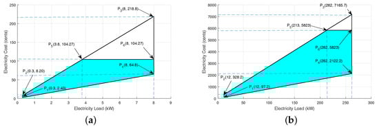 Similarly, the total electricity consumption and electricity cost for multiple smart homes against deferrable appliances in a day is calculated by Equations (5) and (6), respectively.