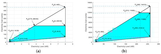 Per hour electricity cost and total electricity cost against 24 h for a single smart home paid by consumers are calculated by Equations (14) and (15), respectively.