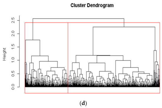 - Langfelder, P.; Zhang, B.; Horvath, S. Defining clusters from a hierarchical cluster tree: The Dynamic Tree Cut package for R. Bioinformatics 2008, 24, 719–720. [Google Scholar] [CrossRef] [PubMed]