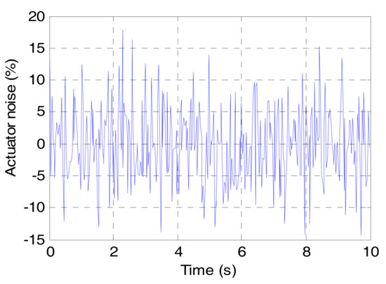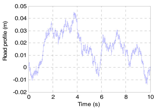 In this simulation, a C-class road is introduced as the random road excitation, and the vehicle speed is set to a constant value of 70 km/h. The profile of the C-class road is shown in Figure 9. In addition, in order to verify the robust performance of the proposed method, a band-limited white noise is introduced to the actuator force of both the suspension and DVA. The noise is in the range of 20% of the actuator force, which is shown in Figure 10.
