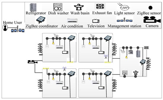 IoT is a technological phenomenon that connects the physical and the computing worlds, while enabling ubiquitous communication at any time using various services for smart home applications. For domestic purposes such as heating control, security, lighting, etc., the smart home concept provides efficient management mechanisms, with increasing usage of smart devices. The smart home control system based on Coordinator-based ZigBee networking (CoZNET) mitigates the interference effect and minimizes the energy consumption of domestic appliances []. Moreover the workings of a smart home system based on CoZNET is divided into three sections, namely Smart Interference Control System (SICS), Smart Energy Control System (SECS) and Smart Management Control System (SMCS). SICS enables the smoother communication with lesser packet loss, while mitigating interference effects using multi-attribute decision making-based channel assignment mechanism in the entire smart home. SECS further reduces energy consumption in the smart home, with the usage of a light control system and a household appliance control system, then a number of facilities are provided to users for exploiting the control of the entire smart home system, while implementing a fundamental unit called SMCS.