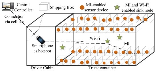 In Figure 4 quality sensing and communication of product boxes is illustrated, which is one of the aspects of minimizing wastage of food because of spoilage and contamination. Tiny sensors such as Food Scan, C2Sense, etc. are inserted into containers or shipping boxes at the time of delivery inside a warehouse or in a truck. Then these sensed data along with a box ID for food contamination tracking are transmitted to the central controller through an appropriate sensor network. During the flow of data in the Internet, energy consumption is focus issue for localization, scheduling, communication, etc. In a similar way, during the flow of package containers from source to destination the issue of energy consumption is a major challenge before the researchers for sensing, standardization, resource sharing, transportation, etc. to provide an efficient smart logistics system in IoPL.