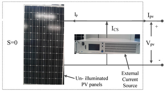 In this paper, an emulated PV source is constructed by using an un-illuminated PV panel and an external current source for testing PV inverters and MPPT algorithms in the laboratory. The circuit connection of the constructed PV source is shown in Figure 11.