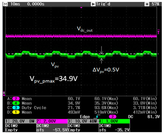 Measured terminal voltage of the constructed PV source for testing a boost dc/dc converter with P&O MPPT algorithm.