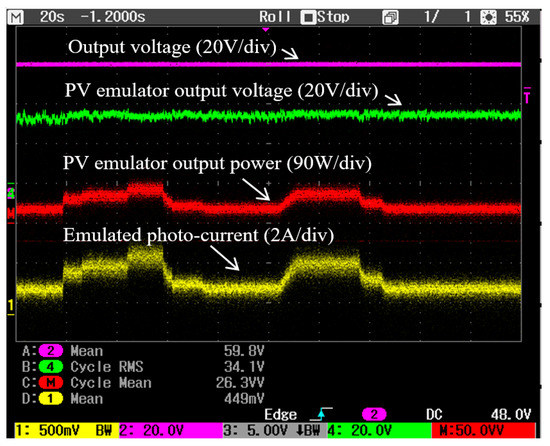 It is important to mention that the proposed emulated PV source was constructed using actual solar panels with an external power supply, the electrical characteristics is mainly determined by the connected solar panel. The proposed PV source has the advantage of high bandwidth which is an essential characteristic for testing high frequency MPPT algorithms. The dc power supply only provides the excitement current to mimic the photocurrent generated at different solar irradiance. The disadvantages are that an actual PV panel will be required to simulate the PV devices, it is also not very convenient to simulate the temperature effect.