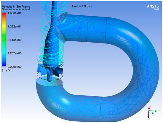 The pump delivers the required mass flow rate and pressure head, but, as shown in Figure 20 and Figure 21, some side effects require further optimization of the design: