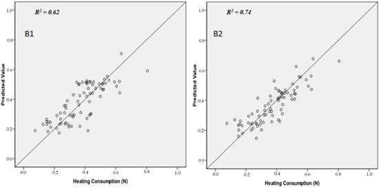 Other studies focus more on the relation between energy or heating consumption and technical issues such as special insolation, the building direction, and the type of heating [9,10].