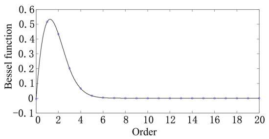Calculating the data of the Bessel function, the fitting curve is shown in Figure 7.
