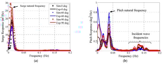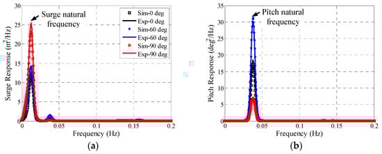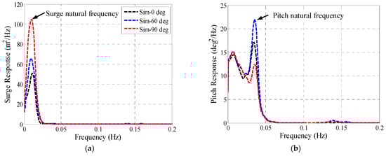 PSD plot of (a) surge motion and (b) pitch motion.