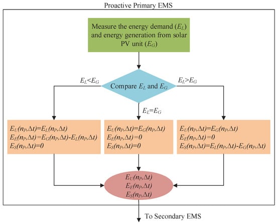 - Step 1: Gather the energy generation information, from the solar PV unit and load energy information for a proactive house at any instant . Compare the energy consumption by loads of a proactive house with the energy generation from its own solar PV system, i.e., calculate the energy shortage as if or energy excess if .