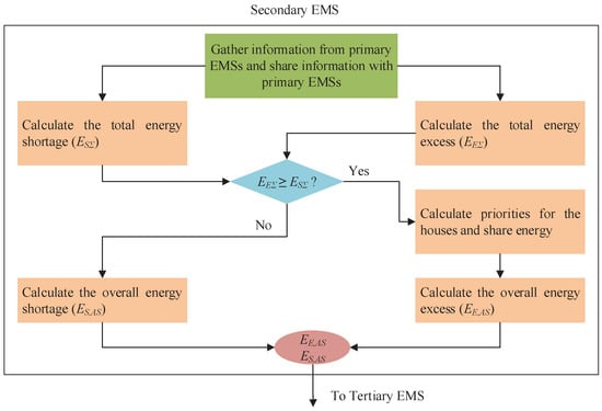 Thus, it can be said that the primary EMSs facilitate appropriate energy sharing among different houses in a microgrid. However, the secondary EMS does the calculation of overall energy shortage and excess, which are discussed in the following subsection.