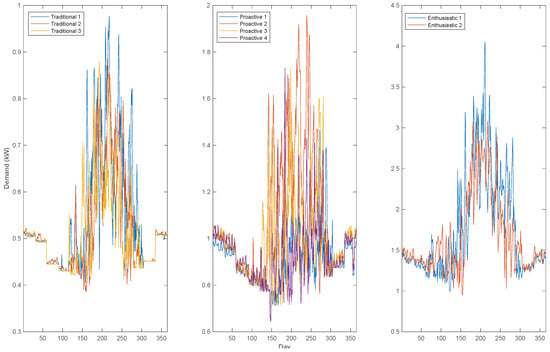 The third set of houses is grouped as enthusiastic houses, which are the ideal houses in the context of the microgrid. These houses are defined through the following set: