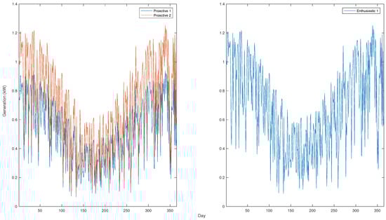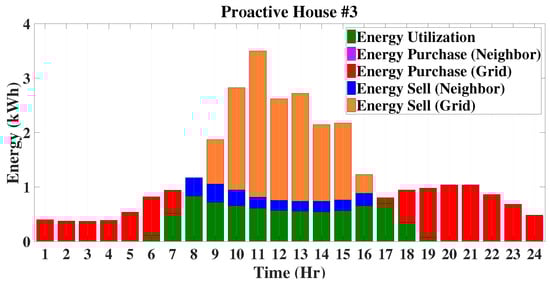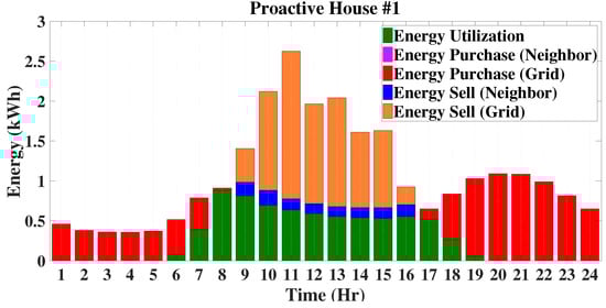 From the energy profiles in Figure 13, Figure 14, Figure 15 and Figure 16, it can be seen that all proactive houses operate in this mode within the time interval 20:00 h–05:00 h.