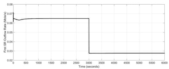 The molar flow rate of the outflows, , was defined by the relation of the fuel and air flow stability (Equation (41)) [20]: