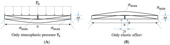 Schematic of the calculation model. (A) only atmospheric pressure P0; (B) only elastic effect.