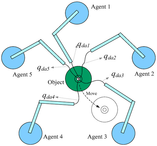 The multi-agent system consists of five agents is illustrated in Figure 5, they have the same mission to move an object from the initial position to the required position, where the desired trajectory of agent 1, agent 2, …, agent 5, respectively.