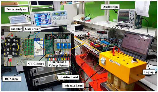 The proposed NSV-MPC has been validated in simulation by using Matlab/Simulink. Then, it is also validated through experimental implementation with a three-phase four-leg inverter laboratory prototype. The parameters of the inverter are as specified in Table 4. The experimental test was carried out using a field programmable gate array (FPGA)-based controller, and it can be used to implement the parallel processing technique of the model predictive controller to enhance the system dynamic response.
