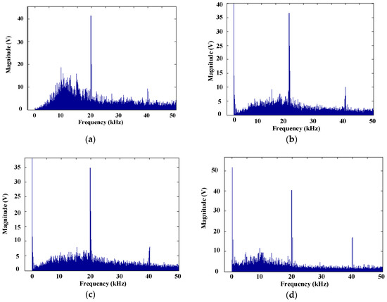 FFT analysis results of CMV (a) Conventional MPC, (b) Proposed NSV-MPC with PPPP vector, (c) Proposed NSV-MPC with NNNN vector, (d) Proposed NSV-MPC with active vectors only.