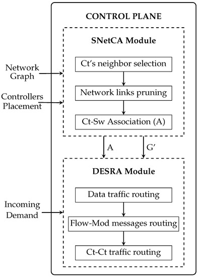 Illustrative diagram of the proposed approach. SNetCA, Static Network Configuration Algorithm; DESRA, Dynamic Energy Saving Routing Algorithm.