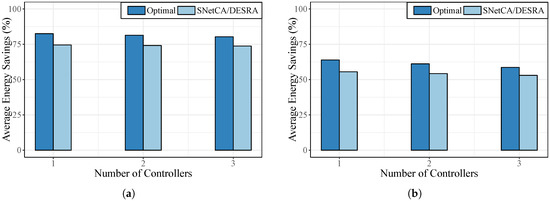 Average energy savings with in the: (a) New York topology; and (b) Norway topology.