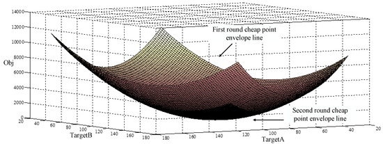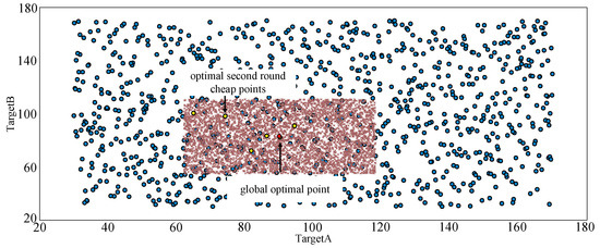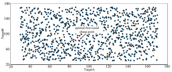 Figure 11, Figure 12, Figure 13, Figure 14 and Figure 15 will give an intuitive sense of data distribution with the SEUMRE algorithm. To make the presentation clearly, we choose only two CAC groups, A and B, which together make up the two-dimension solution space. Every point in the following figures represents a pair of target A and target B.