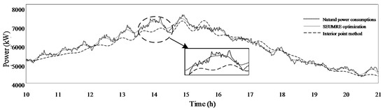 Through the method of smoothing, the objective points can be calculated. Figure 16 shows the response target that is generated using the Equation (14) as the objective function. When comparing to the uncontrolled power and response result, conclusions can be drawn that with the predicted objective points, power consumptions of CAC can be controlled and conducted in a smaller range with less oscillation, which can be seen in Figure 19.