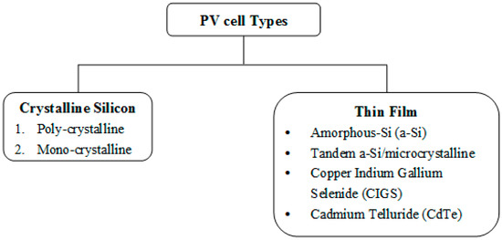 Photovoltaic (PV) cell types.