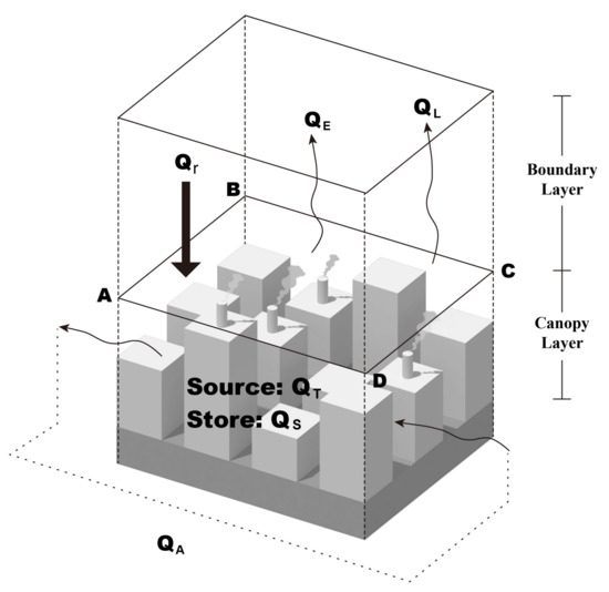 To better understand the energy flow within an urban built environment, the concept of energy balance should be introduced. Energy balance is originated from the first law of thermodynamics, which means that energy can neither be created nor destroyed, but only converted from one form to another [25]. The equation is written as (1):