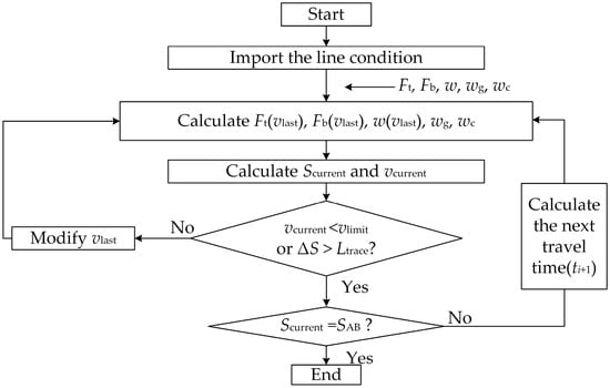 where M is the mass of the train, and the traction force Ft(v), braking force Fb(v), running resistance w(v), unit gradient resistance wg and unit curve resistance wc can be obtained from Section 2.1 and Section 2.2. The travel distance of current unit time Scurrent can be calculated as:
