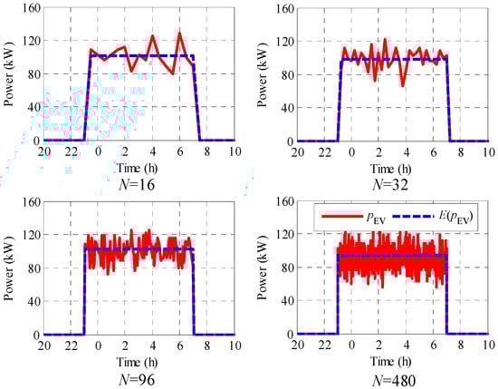 Figure 3. Charging power curves with a different number of electric vehicles (EVs).