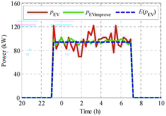 Figure 5. Charging power curves using the original and improved autonomous stochastic charging control strategy (ASCCS).
