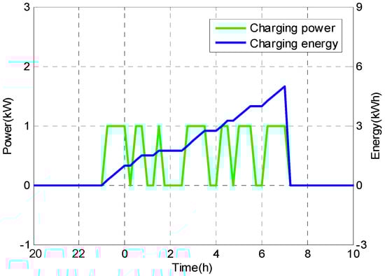 According to [7], EVs parking at home account for more than 75% of the daily parking time, and the average parking duration at night is more than 10 h. It also states that delayed and average charging are better than immediate charging at home, and non-home charging increases peak grid loads. Results from [8] confirm that off-peak charging is more beneficial than peak charging. The delayed and off-peak charging has the advantage of shifting EV loads to off-peak periods with a low electricity price. However, without meticulous load control, the shifted EV loads would result in new load peaks. A simulation model is proposed in [9] to analyze economic and environmental performance of EVs operating under different conditions, including electricity generation mix, smart charging control strategies, and real-time pricing mechanisms. Its results show that 100 kWh excess electricity can be reduced annually per vehicle when the smart charging method is employed to replace the off-peak charging method. However, the method is based on one-day-ahead prediction and hourly electricity pricing mechanisms. The “valley-filling” charging studied in [10] places EV loads near the bottom of conventional loads, achieving smoother loads to the larger grids and higher penetration of EVs.