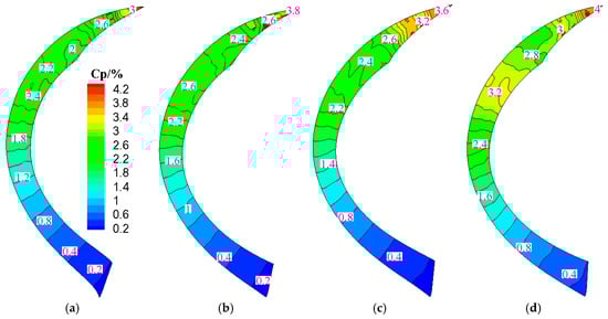 4.3. Influence of Tip Clearance on Pressure Fluctuation in the Guide Vane