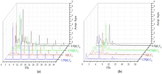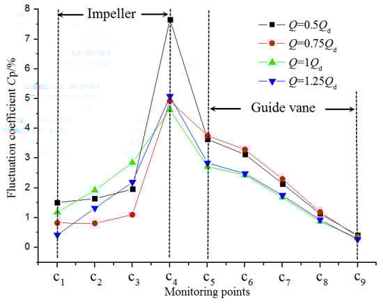 4.4. Comparison of Pressure Fluctuation between Impeller and Guide Vane