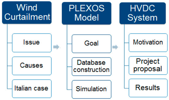This work is aimed at analyzing the problem of RES curtailment, with a particular focus on wind, which, so far, has been the main resource affected by this issue. A description of the problem, with its causes and current implications in some countries and, with particular attention, in Italy, is followed by a detailed study of the Italian case. This includes modeling the Italian electric system on the software PLEXOS by Energy Exemplar and checking how a suitable network expansion might mitigate wind curtailment in the country. In particular, the creation of a HVDC line connecting Southern and Northern Italy is conceived and simulated [21,22]. The choice of Direct Current comes not only from the great distance to be covered by the line, but also from its better controllability and its capability to link systems that have different phases or frequencies (even temporarily). These characteristics make HVDC a particularly suitable choice in a network more and more dominated by the presence of variable and non-programmable RES [23,24].