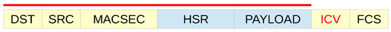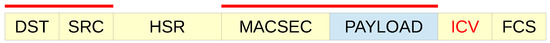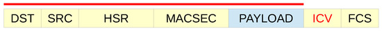 One way of solving this problem is to create a valid HSR frame and secure it using MACsec as in Figure 7. The ICV tag protects the whole message from the destination address to the payload.