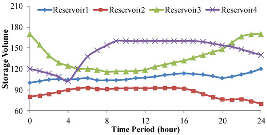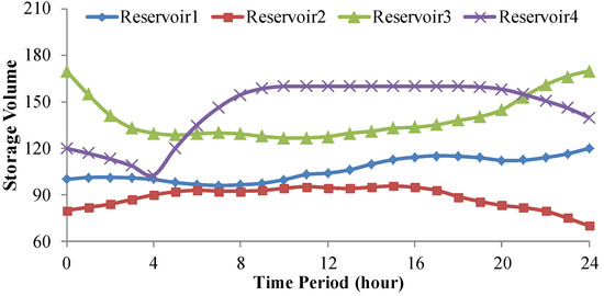 The water storage processes of Scheme 15 by PMOGA for Case 3.