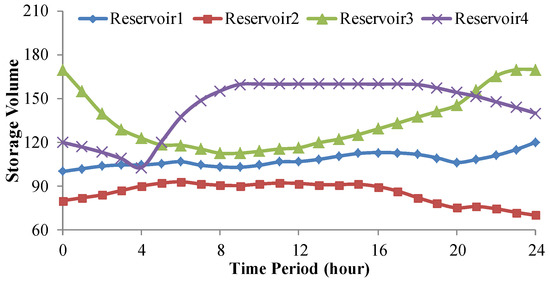 The water storage processes of Scheme 15 by PMOGA for Case 2.