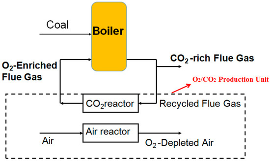 The combustion of fossil fuels contributes to the emission of CO2 into the atmosphere, which consequently causes global warming [1,2,3]. Oxyfuel combustion represents a promising technique which can achieve a zero CO2 emission, which has the following advantages: (1) up to 95% CO2 concentration in the dry flue gas; (2) improved boiler efficiency; (3) reduced power consumption in the flue gas treatment because of the small amount of flue gas involved; and (4) denitrogenation equipment and process being saved [4,5]. However, the high cost of cryogenic air separation is a major economic challenge to the deployment of the oxyfuel combustion technology with carbon capture. Therefore, it is of great significance to reduce the cost of oxygen production for the oxyfuel combustion power plants in the future when CO2 capture becomes a necessity [6].